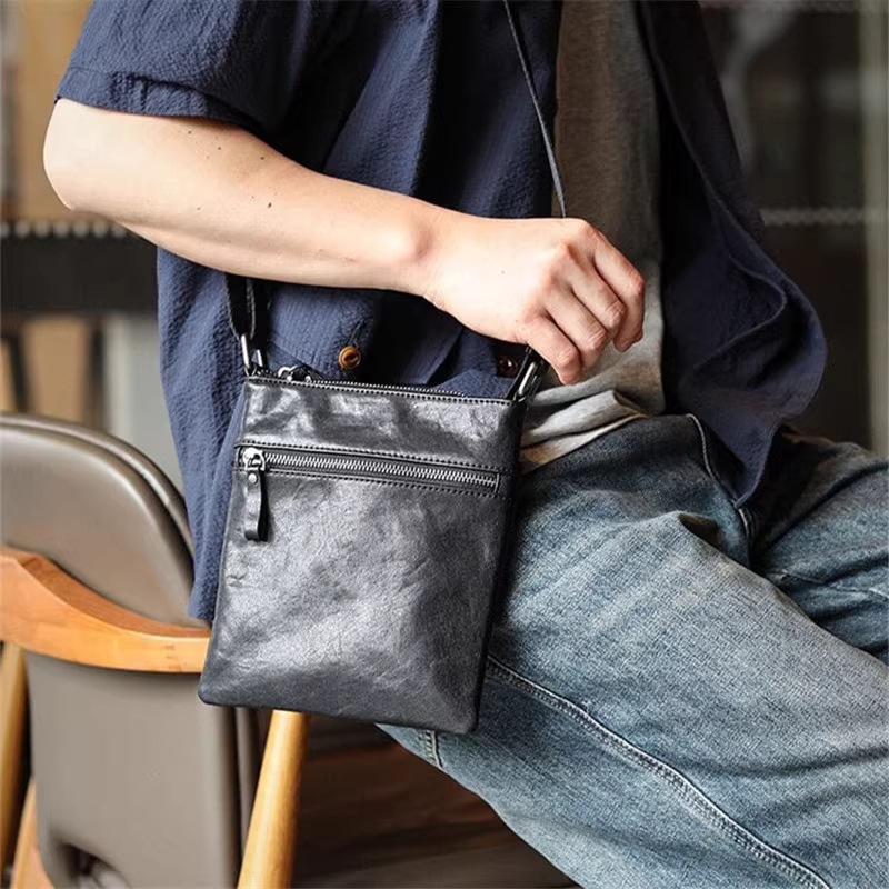 2024 trend men's soft leather chest bag business shoulder bag waterproof leisure business messenger bag manufacturers wholesale generation
