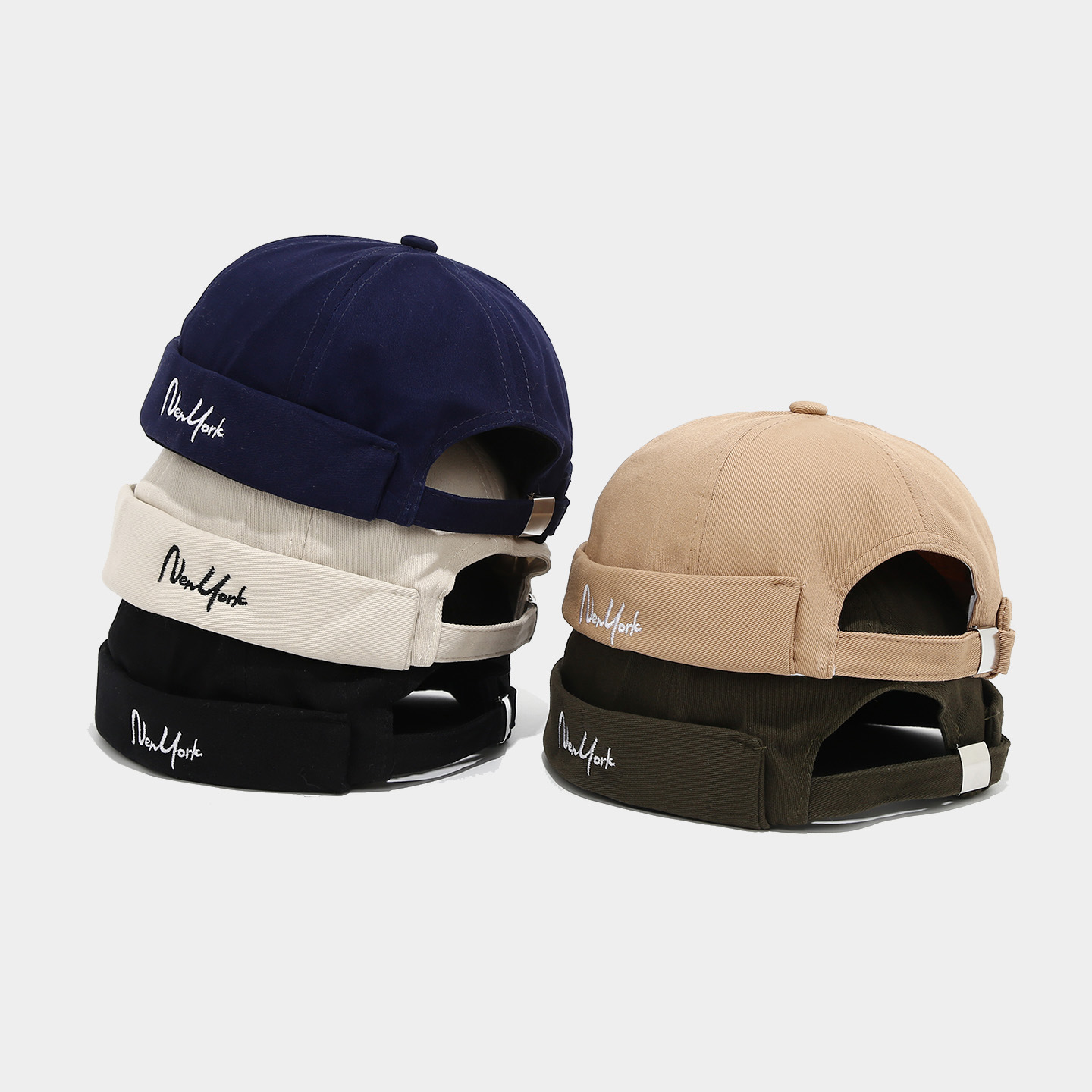 American-Style Brimless Cap for Men, Street Personality Hip-Hop Newyork Letter Embroidery Landlord Cap for Women, Trendy Brand Melon Cap