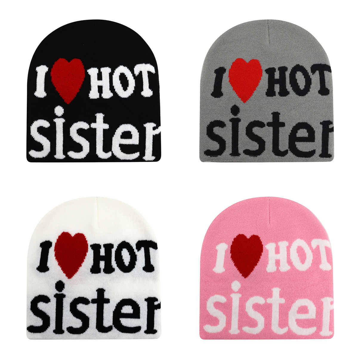 Sister Letter Jacquard Cold Hat Men's and Women's Beanie Autumn and Winter Warm Knitted Wool Hat Ski Hat