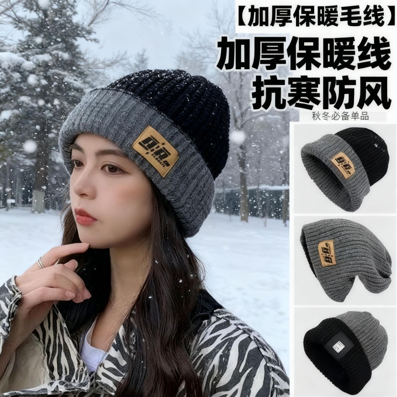 Men's Winter Large Head Circumference Cotton Hat, Trendy Double-Sided Knitted Hat, Winter Warm Woolen Hat, Men's Cold-Proof Hat