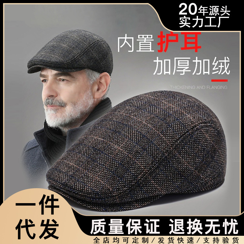Autumn and Winter woolen hat men's middle-aged and elderly warm forward hat Old peaked cap thickened beret old man cotton hat