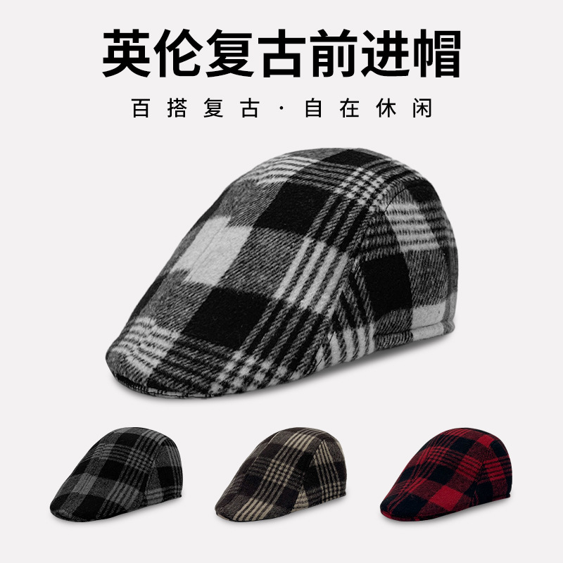 Hat Men's Spring and Autum Classic Plaid Beret Men's Korean Style British Retro Literary Peaked Cap Women's Forward Hat