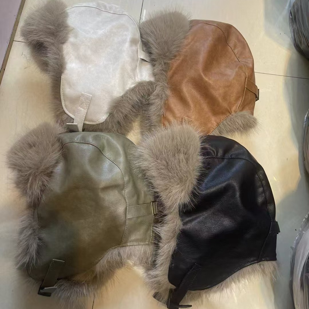 Long Mao Mao Leather Lei Feng Hat Men's Winter Thickened Pilot Warm Hat Women's Northeast Windproof Cold Cycling Ear Protection Hat