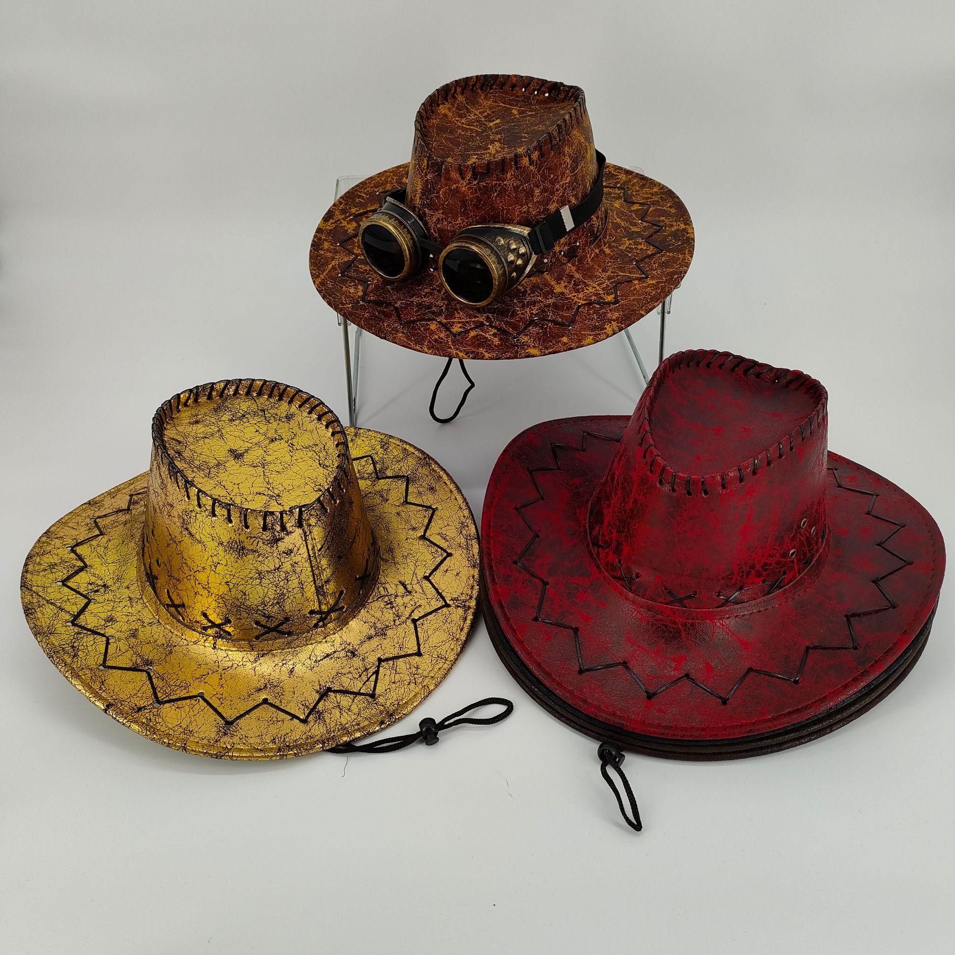 Western cowboy hat stage fashion trendy sun hat personality retro top hat men's summer pilot glasses hat