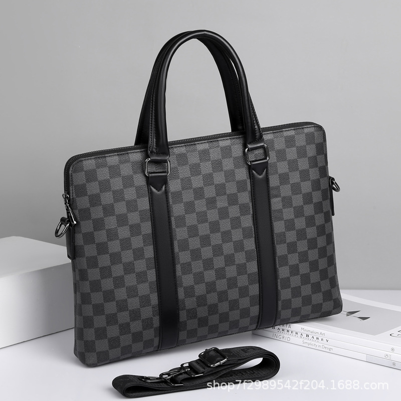 New Korean Style Fashion Business Handbag Trendy Plaid Large Capacity Shoulder Bag Horizontal Briefcase Men's Bag