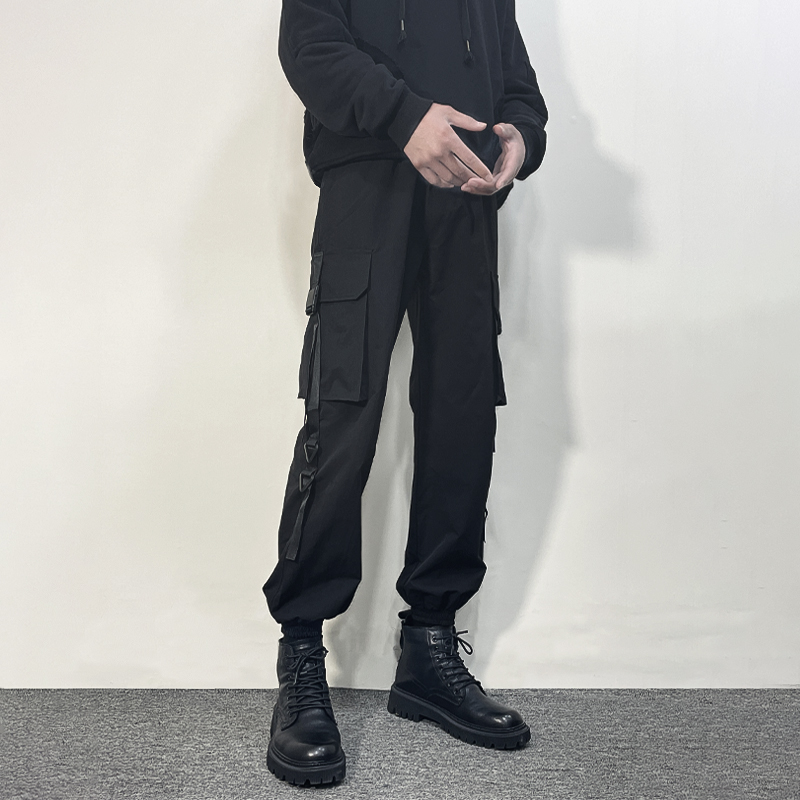 Men's Trendy Cargo Pants 2024 New Autumn Loose Fit Jogger Multi-Pocket American Style Cool Black Casual Pants