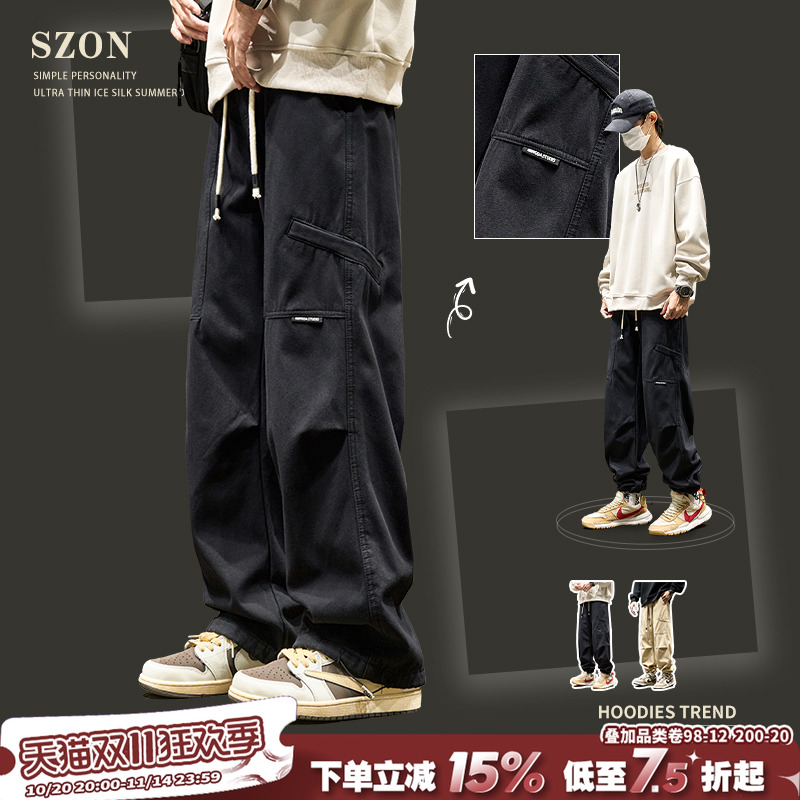 Work Pants Autumn Style Trendy Wide-Leg Casual Long Pants Extended Version for Tall Men Straight Loose Pants Men's Style