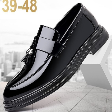 2023 new leather shoes men's autumn business formal wear plus size casual soft bottom black glossy wedding bridegroom wedding shoes