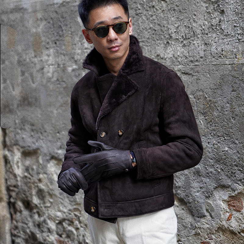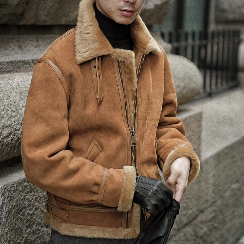 Cm Naples Queen Brown French Lambskin Fur Integrated B3 Pilot Stand Collar Jacket