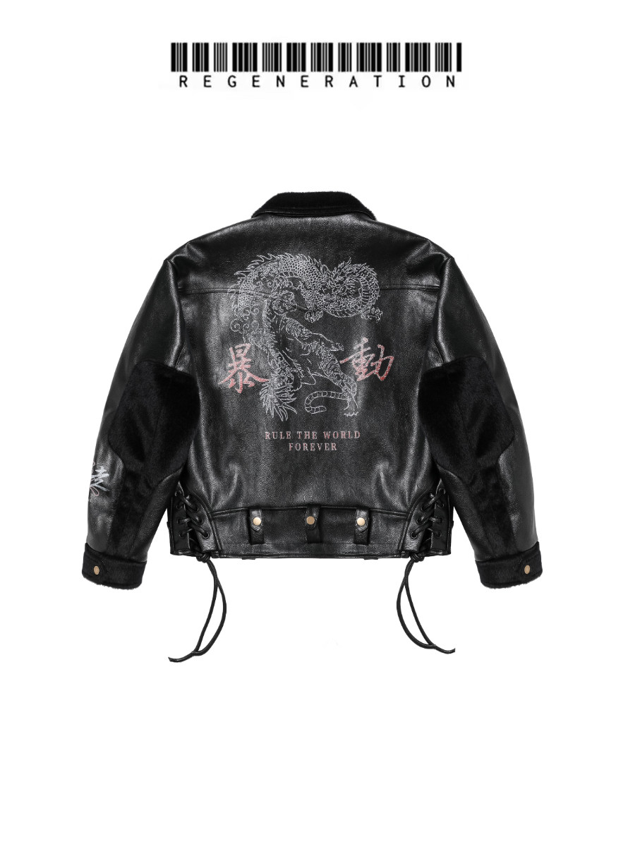 Regen Zone 25Ss「Riot」Dragon and Tiger Riot Motorcycle Leather and Fur Oil Wax Jacket Ctr