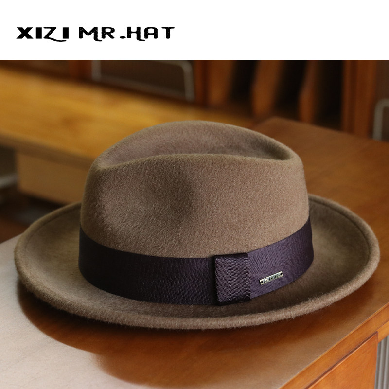 25 Autumn/Winter Men's Wool Jazz Hat with Small Brim, Cool and Stylish, European and American British Casual, Large Head Circumference