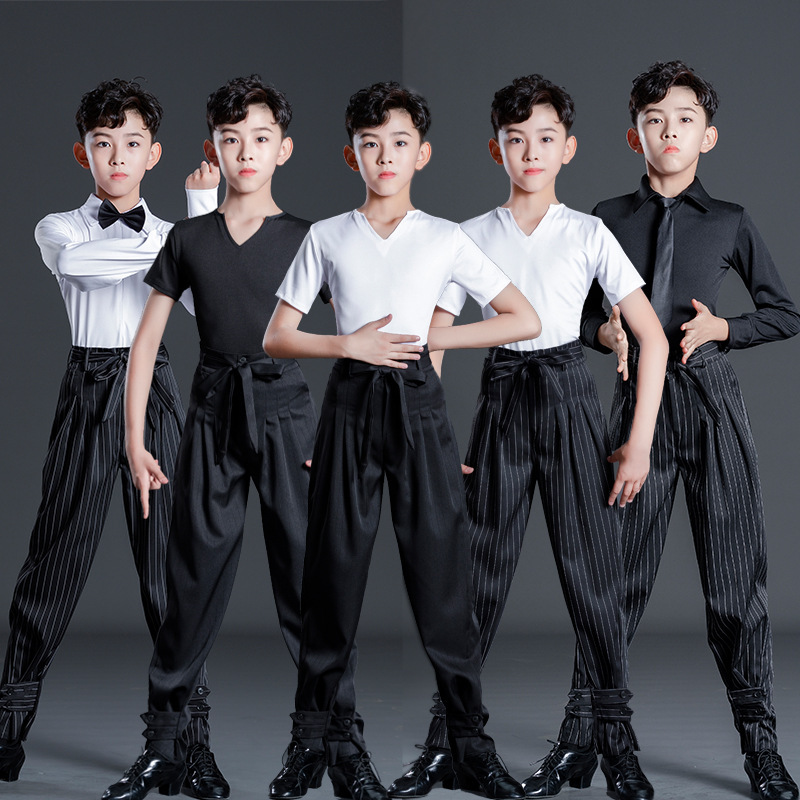 Boys' Practice Clothing Summer and Autumn Boys' Latin Dance Competition Clothing Top Long and Short Sleeve Children's Regulations for Grade Examination Performance Clothing