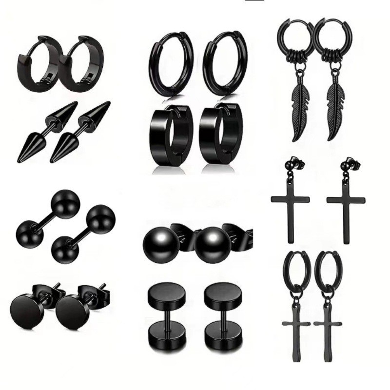 Stainless Steel Men's Personalized Earrings Cross-Border European and American Electroplated Black Classic Earrings Piercing Jewelry Set Wholesale