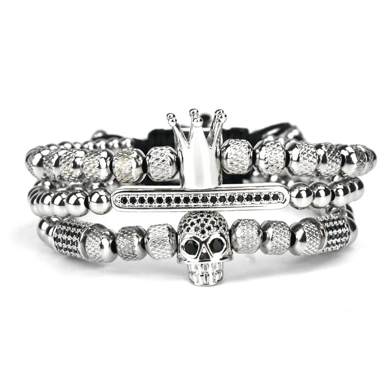 European and American Retro Crown Ghost Head Woven Bracelet Roman Letter Stainless Steel Skull Bracelet Set Four Pieces Men