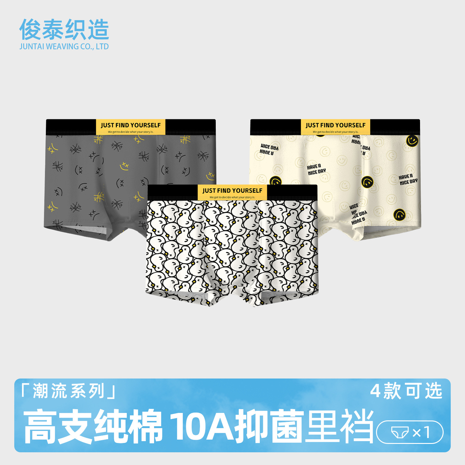 【Premium Selection】Factory Direct Men's Underwear, Pure Cotton Breathable Boxer Briefs, High-End Four-Corner Youth Trendy Pants