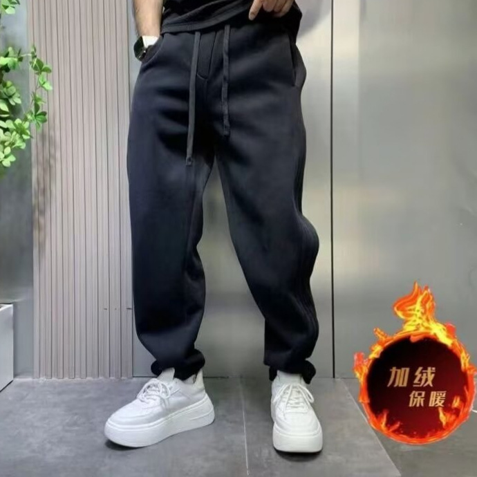 2024 Autumn and Winter New Fleece-Lent Pants Men's Sports Pants Fashionable Loose Straight Solid Color Casual Haren Pants for Men