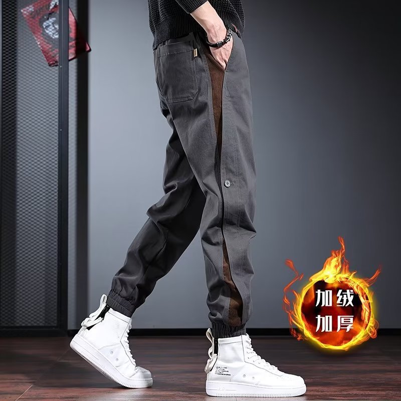 Trendy Brand Work Pants Men's Loose Leg Casual Fleece-Lapped Pants Autumn and Winter Design Sense Pants Men's Puppies Handsome Haren Pants