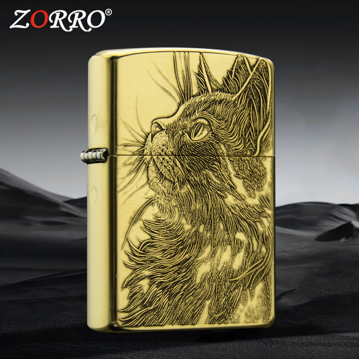 Zorro Zorro Brass Relief Looking up at the Starry Sky Cat Kerosene Lighter Creative Authentic Manufacturer Wholesale Men