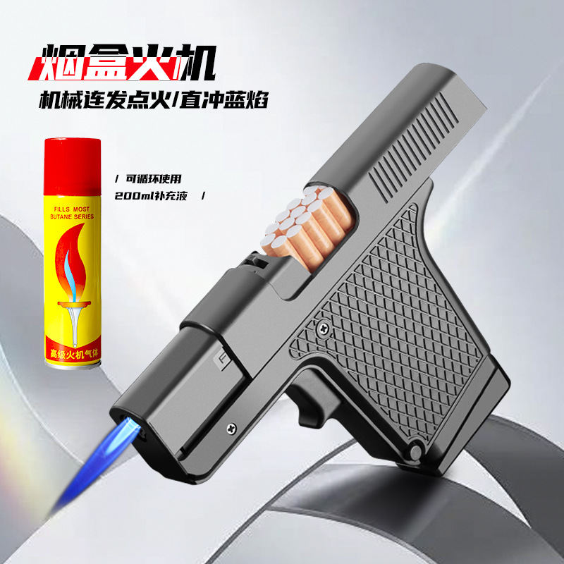 Lighter for Boys, Cool Gun-Shaped Hand Windproof Cigarette Box Lighter, Inflatable All-In-One Personalized Creative Men's Lighter