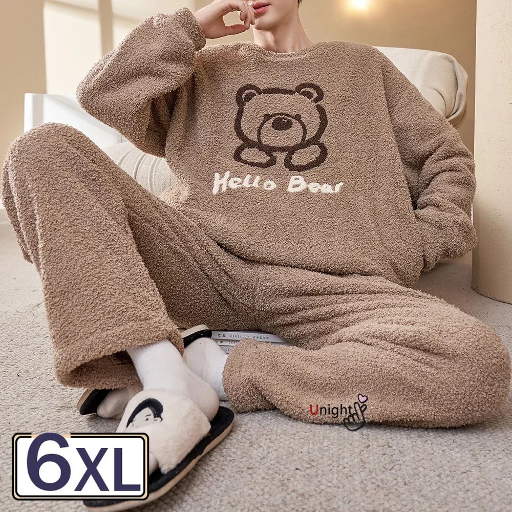 Warm Flannel Thick Men's Pajama Set Plus Size 6XL