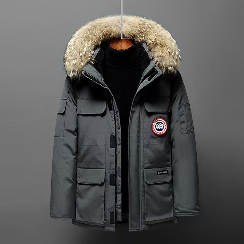 Parker Goose Down Jacket for Men and Women Winter Couple White Duck Down Medium and Long Workwear Large Wool Collar Extremely Cold Jacket Men's Wear