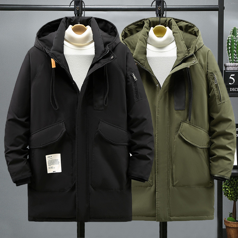 Down Jacket Men's Autumn and Winter Warm Cold-proof Thickened Mid-length Hooded Parker Clothing Simple Fashion Loose Men's Jacket