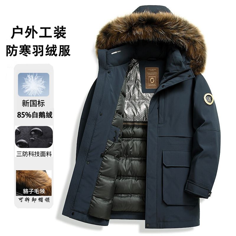 [Extremely Cold Goose Down] High-end Winter Down Jacket Men's Mink Fur Collar Outdoor Parker Style Mid-length Warm Jacket