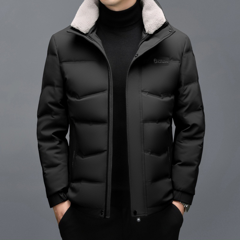 Men's Parka Coat, Fur Integrated, Mid-Length, Fleece-Lined, Thickened down Jacket, New Style, Middle-Aged Men's Jacket
