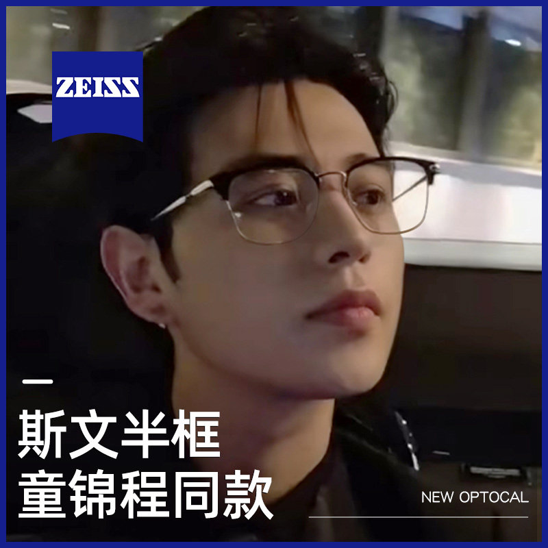 Tong Jincheng's Same Style of Elegant Half-Rim Glasses for Men, Professional Prescription Glasses for Nearsightedness, Compatible with Zeiss Eyebrow Line Pure Titanium Frames