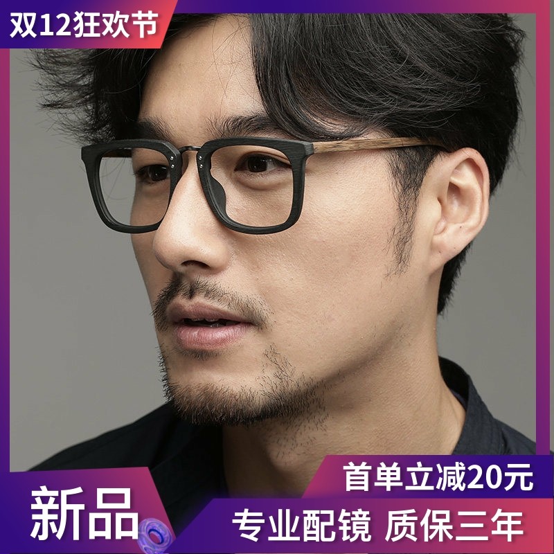 Retro Wooden Prescription Glasses for Men with Large Faces, Wood Grain Black Frame for Women, Photochromic Blue Light Blocking Thick Square Frame Eyeglass Frames Trendy