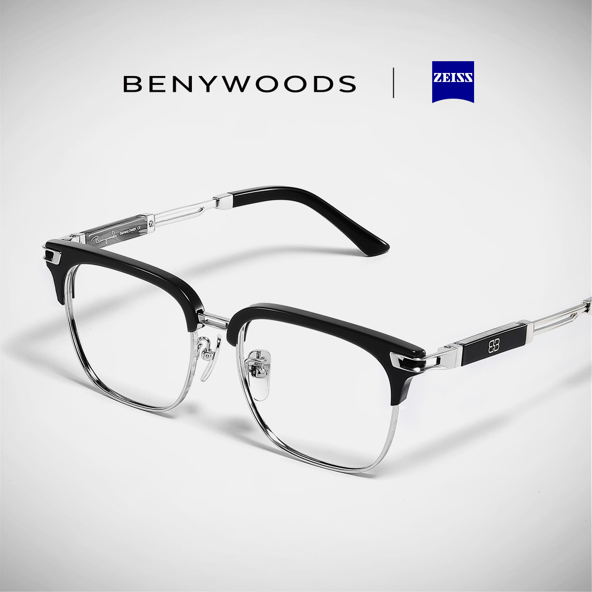 German Benywoods Half-Frame Glasses for Men, Business Style, Suitable for Prescription Lenses, Zeiss Blue Light Blocking, Large Face Frame