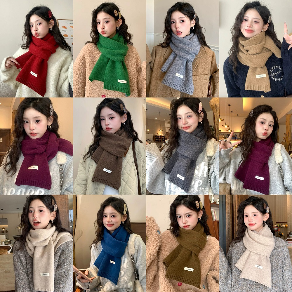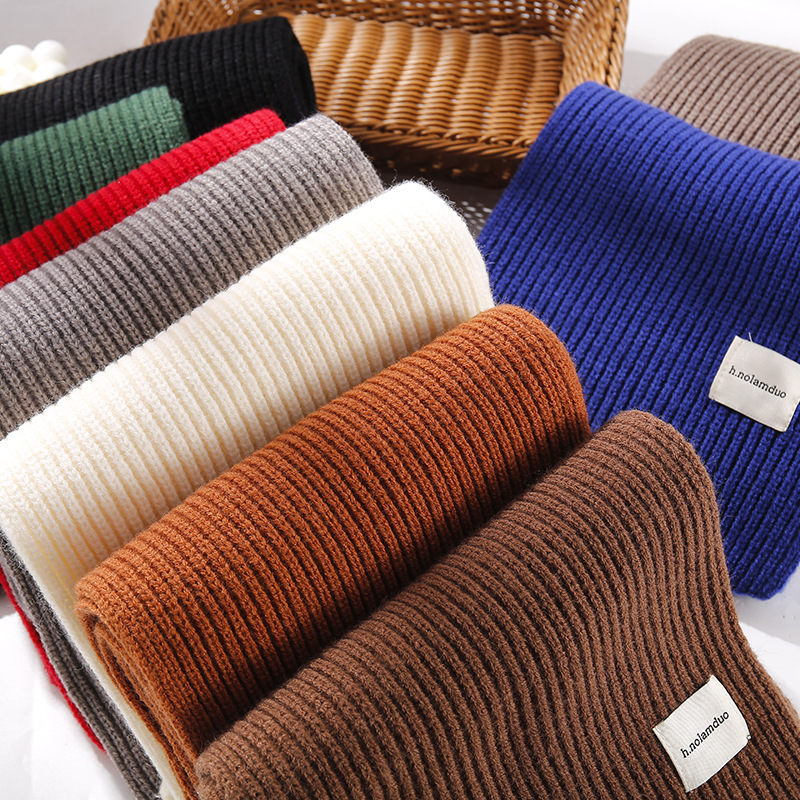 Korean Version Thickened Solid Color Knitted Wool Scarf for Women Versatile Warm Simple Trendy Couple Neck Warmer for Men