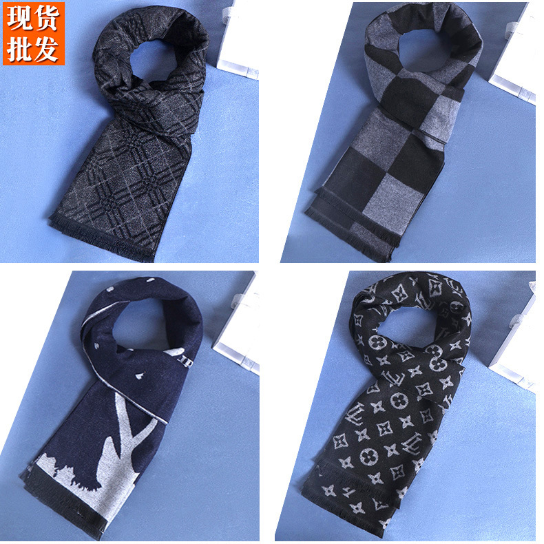 New Winter Men's Scarf Warm and Thickened Imitation Cashmere Plaid European and American Simple Men's Foreign Trade Manufacturer Wholesale Customization