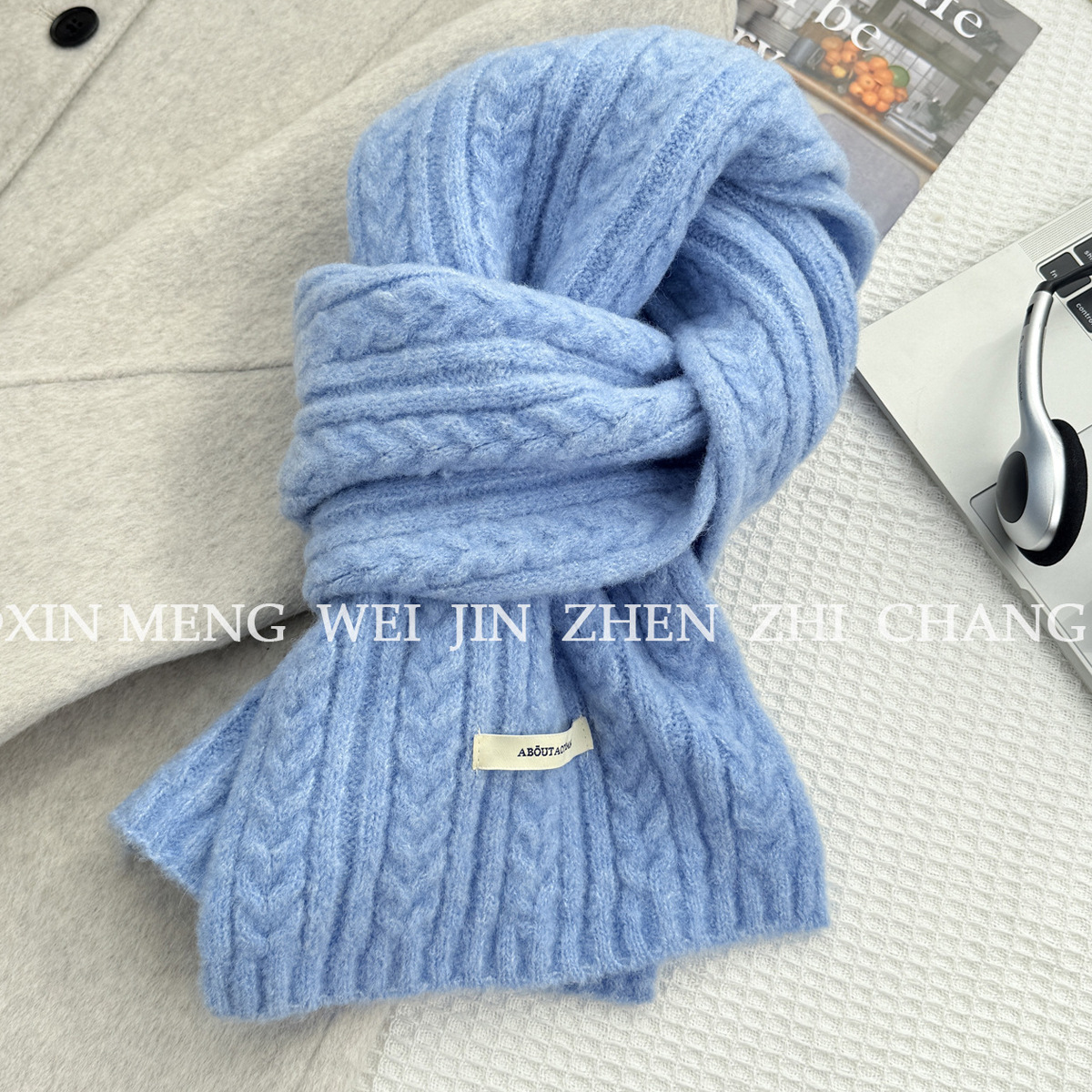 Wool Blend Scarf for Women, Autumn and Winter Korean Style, High-End Atmosphere, Warm Knit Versatile Solid Color Cable Scarf for Men