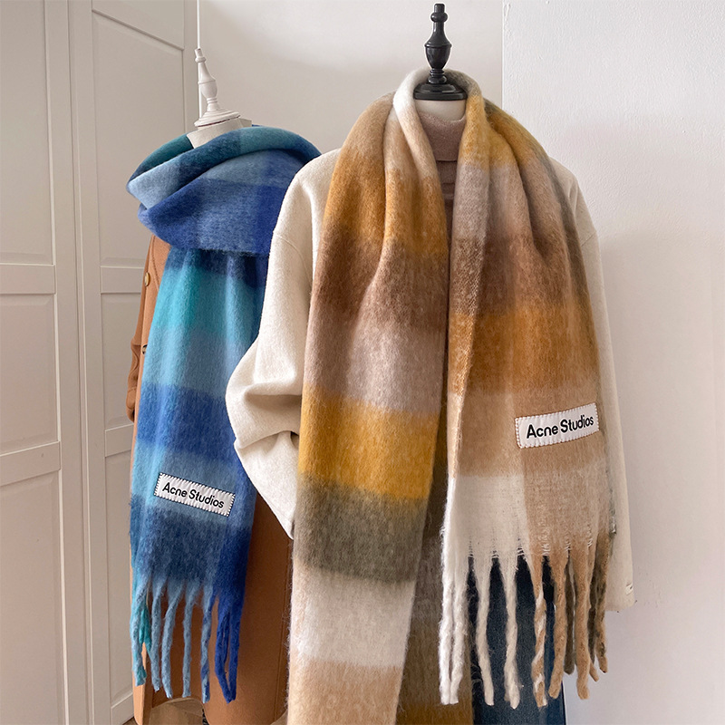 Mohair Winter New Versatile High-End Plaid Scarf Warm Scarf Couple Neck Scarf Men's Thickened Scarf Shawl