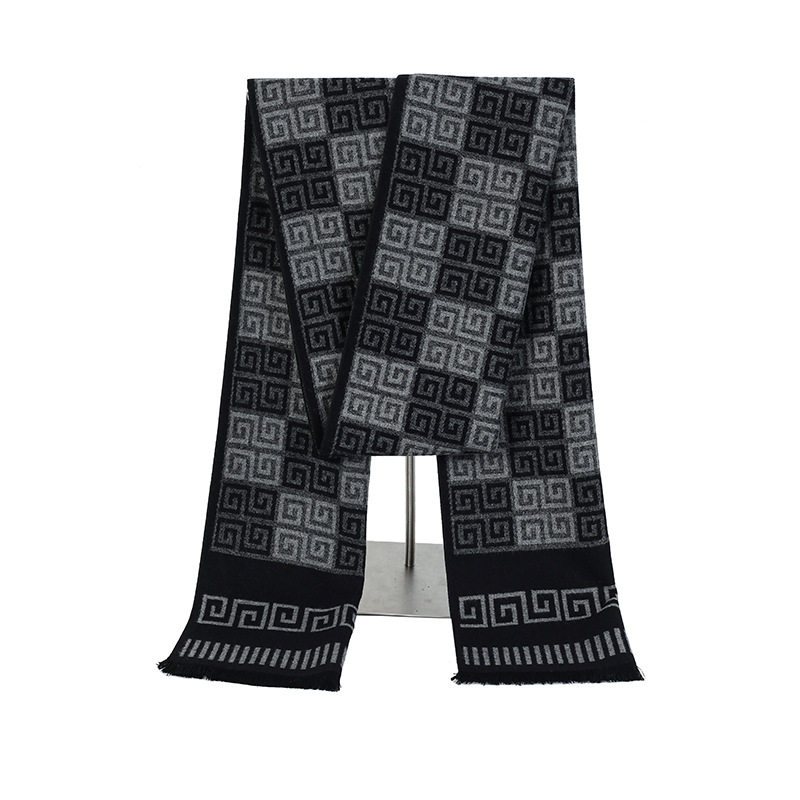 Elegant Gray Men's Scarf Winter Faux Cashmere Male Scarves B