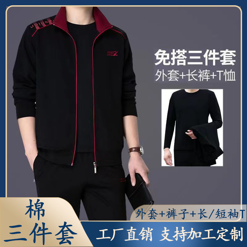 Men's Sports Suit Spring and Autumn Men's Suit Dad Autumn Three-Piece Sportswear Suit Men's Middle-Aged and Elderly Cotton