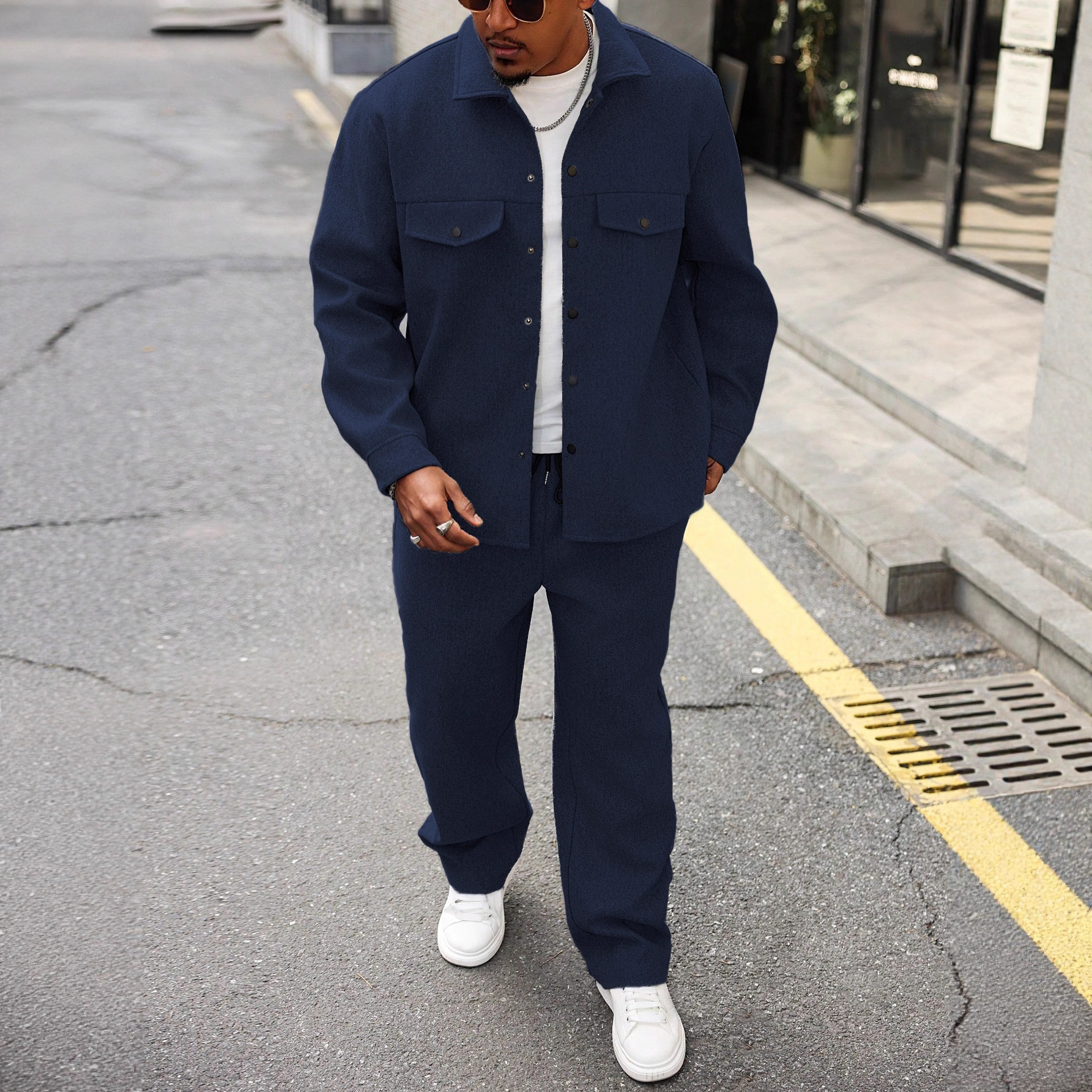 Waffles Casual Suit Men's Autumn and Winter Fashionable Loose Long-sleeved Trousers Men's Wear with a Set of Handsome Clothes