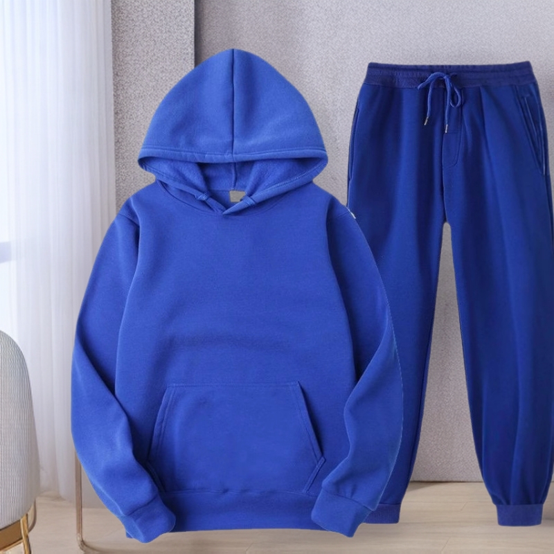 Foreign trade men's and women's solid color sportswear suit fashion casual autumn and winter warm hooded cardigan sweater sweater pants