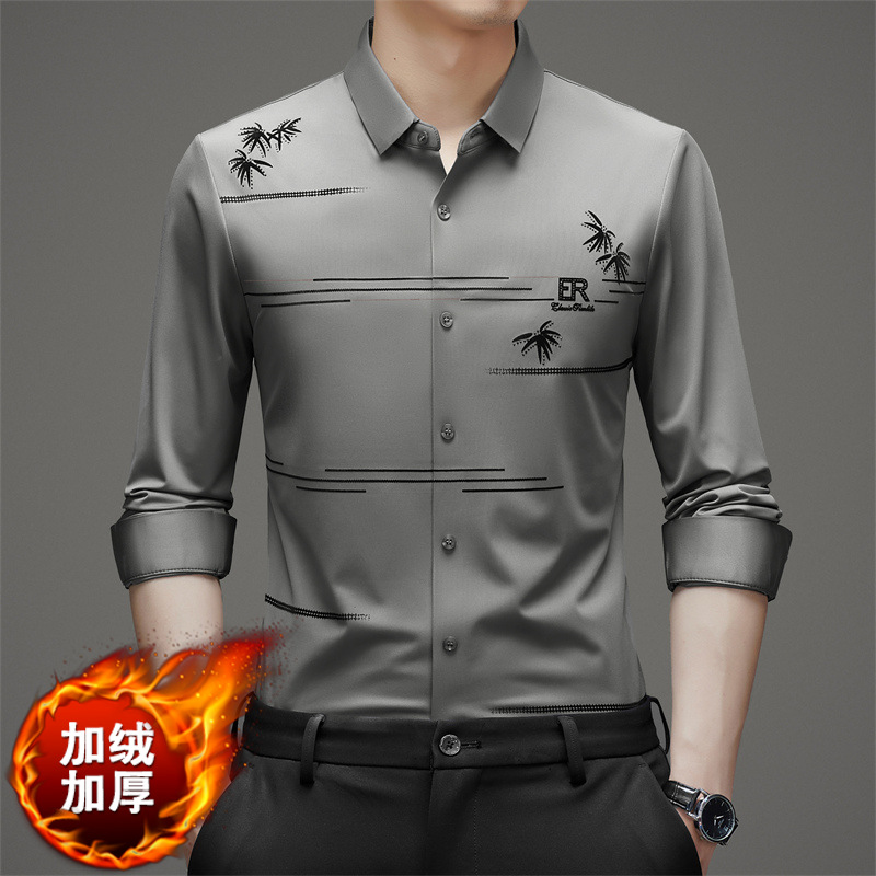 Live explosions fleece-lined shirt men's winter lapel seamless flocking long sleeve padded shirt men's a generation of hair