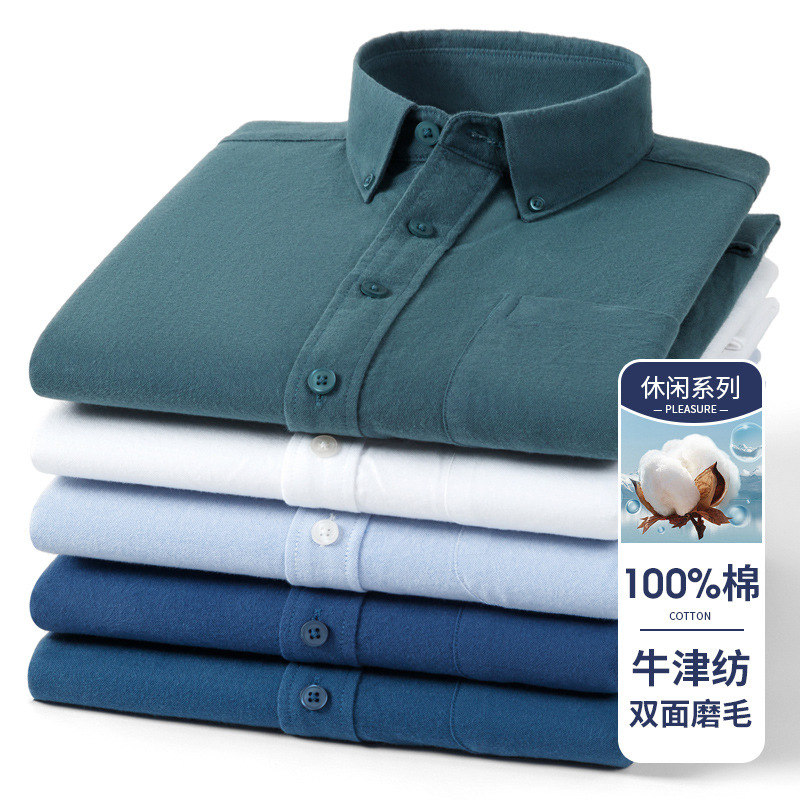 New Cotton Double-sided Sanding Thickened Spring Autumn Winter Business Oxford Spinning Solid Color Long Sleeve Shirt Men's Cotton Shirt