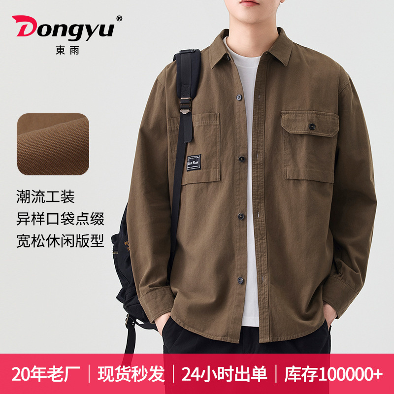 Dongyu Men's New Spring and Autumn Men's Shirt Long Sleeve Men's Solid Color Double Bag Shirt Simple Casual Jacket Summer Korean Men