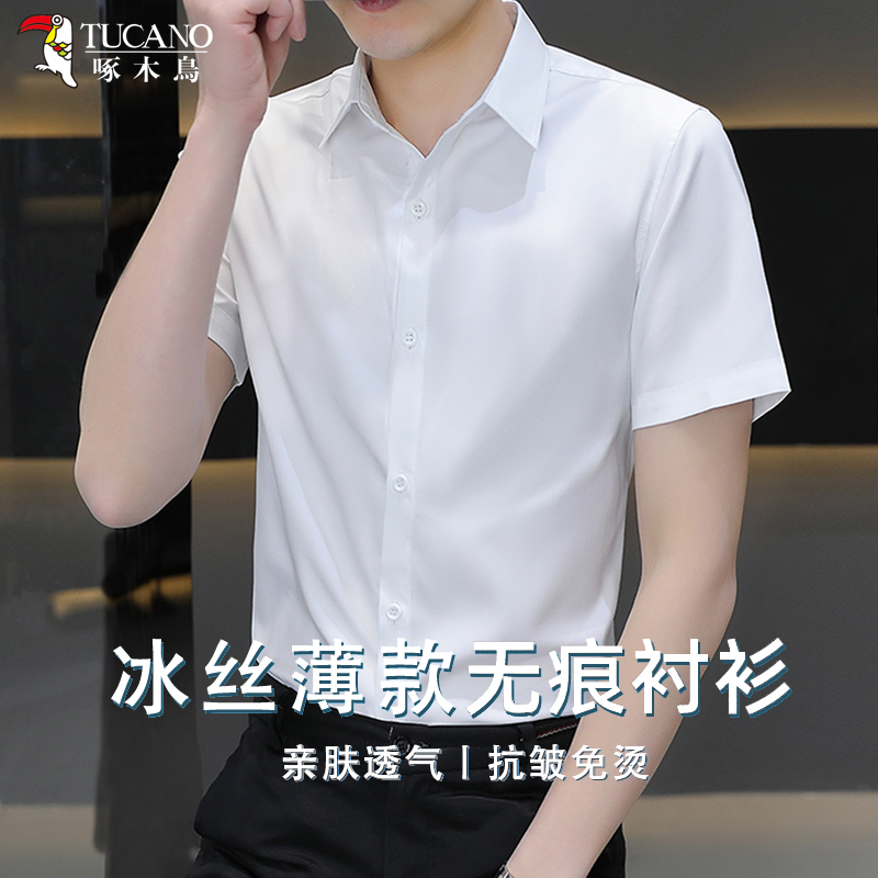 Woodpecker High-End White Shirt Men's Short-Sleeved 2025 New Summer Ice Silk No-Iron Shirt Business Formal Wear