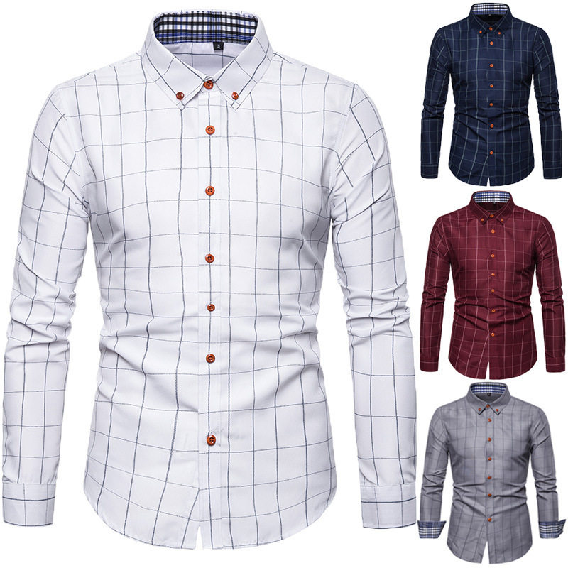 Men Plaid Dress Shirts 2018 Spring Fashion Plaid Men's Casual Slim Long-Sleeved Shirt