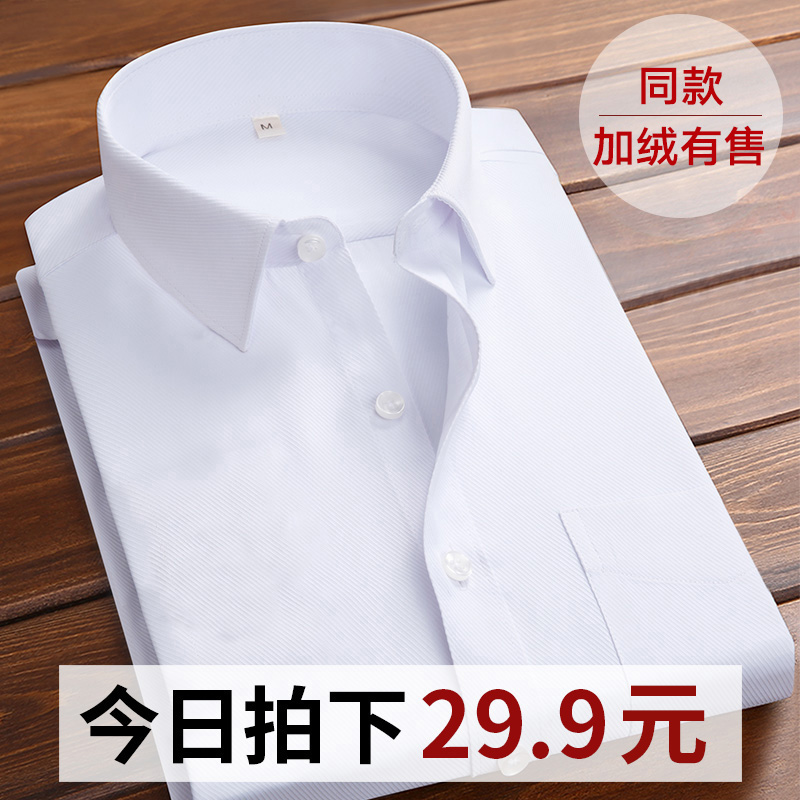 Fall and winter Men Long sleeves white shirt business professional formal work suit shirt wedding blue and black parka Fleece-lined inch
