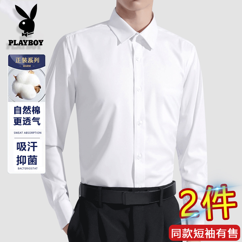 Playboy White Shirt Men's Long sleeves Business Dress Wrinkle-resistant silm White Shirt Men Best Man Suit Short-sleeved Inch