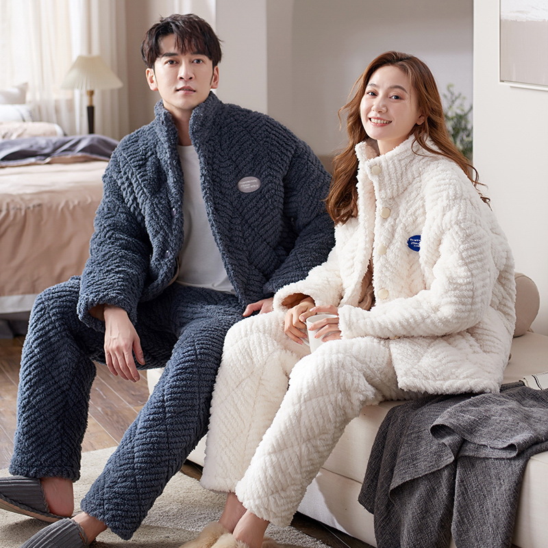 Island Velvet Couple Pajamas Women's Autumn and Winter Thickened Long-sleeved Flannel Men's Warm High-grade Home Clothes suit