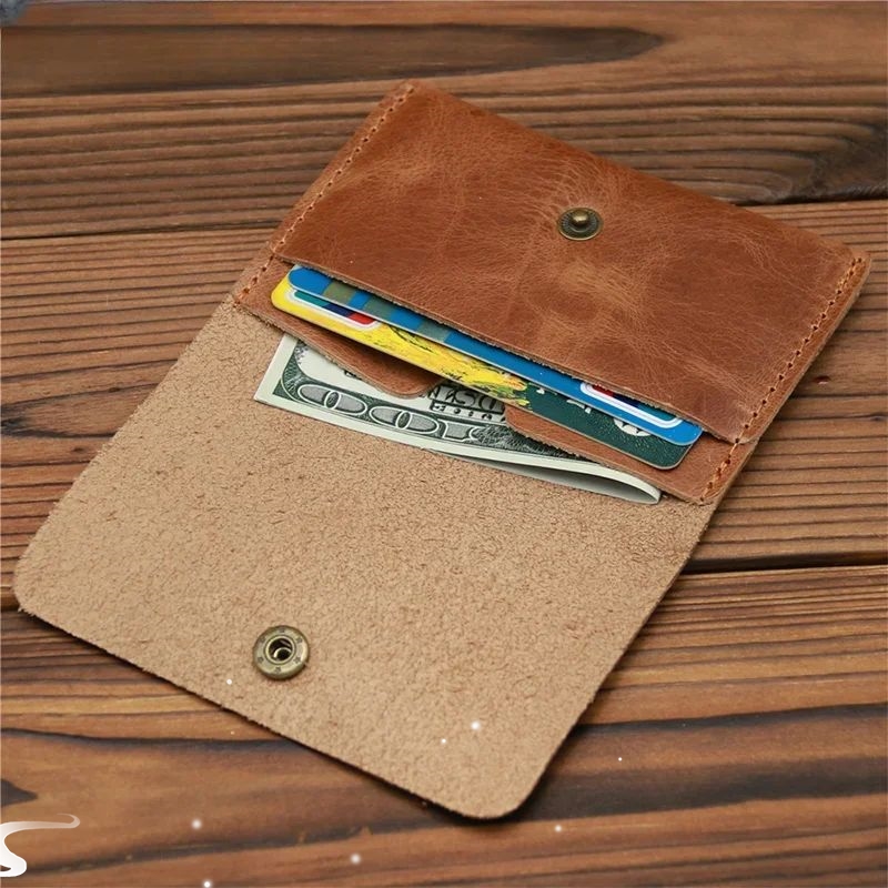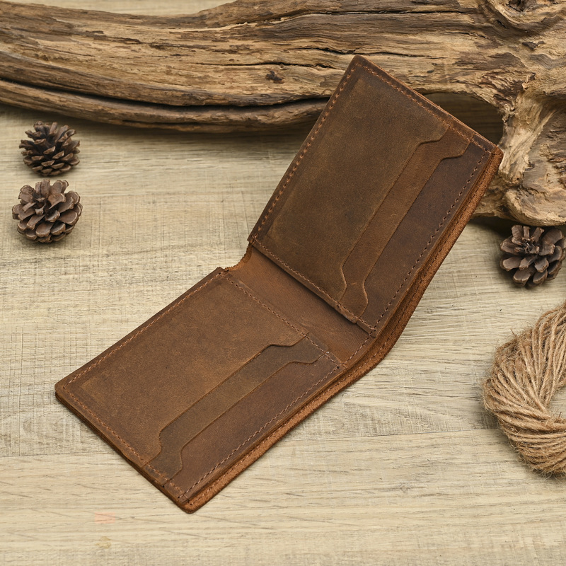 Men's Wallet Simple Vintage Leather 4-Card Wallet Genuine Leather 4-Card Slot Wallet