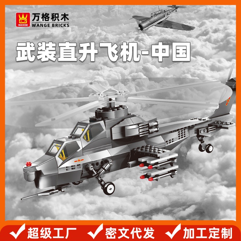 Wanger Building Blocks Military Series Armed Helicopter 4002 Model Small Particle Building Blocks Assembled Children's Educational Toys