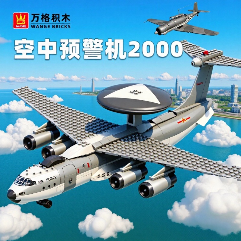 Wange Military Series Airborne Early Warning Aircraft 2000 Model Small Particle Building Blocks Building Kidsren's Educational Toys 5005